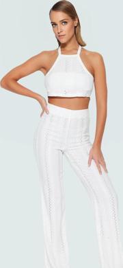 PayBuy Dantel Detaylı Halter Yaka Crop Bluz ve Geniş Paça Pantolon Plaj Takımı Özel Tasarım