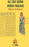 Modelin ölçüleri: Boy: 174cm, Göğüs: 88cm, Bel: 59cm, Kalça: 88cm. Mankenin üzerindeki ürün S-36 bedendir. Bu takım, her vücut tipine uyum sağlayacak şekilde tasarlanmıştır. Plaj günleriniz, yaz akşamlarınız veya günlük şık kombinleriniz için idealdir. Bu muhteşem takım ile tarzınızı sergileyin ve yazın keyfini çıkarın.
