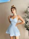 Dantel İşlemeli Boyundan Bağlamalı Mavi Saten Gecelik