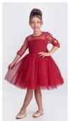 Mnk Baby&Kids Dantel Puanlı, Uzun Kol Prenses Kız Çocuk Elbise M00707 KIRMIZI
