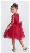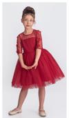 Dantel Puanlı, Uzun Kol Prenses Kız Çocuk Elbise M00707 KIRMIZI