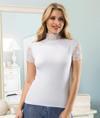 Beruflic markasının şıklığı ve zarafeti bir araya getiren dantelli balıkçı yaka kadın tişörtü, gardırobunuza sofistike bir dokunuş katıyor.