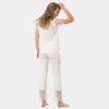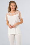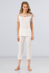 Yakası ve paçası dantel detaylı kısa kollu pijama takımı. Cildi rahatsız etmeyen %65 viskon
