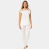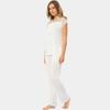 Yakası dantel detaylı düğme ve kurdeleli kısa kollu pijama takımı. Rahat kalıp.