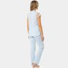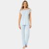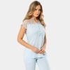 Yakası dantel detaylı düğme ve kurdeleli kısa kollu pijama takımı. Rahat kalıp.