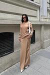- Kahverengi tonlarındaki Darcy Etek Bluz Triko Takım, şıklığı ve rahatlığı bir arada sunar.; - Düz deseniyle zamansız bir tarz yaratırken, her türlü kombinle uyum sağlar.; - Regular kalıbı sayesinde vücut hatlarınıza uygun bir oturuş sergiler.; - Kadın ve kız kullanıcılar için idealdir; her yaş grubuna hitap eder.; - Dokuma kumaşı ile dayanıklılığı artırarak uzun süreli kullanım imkanı tanır.; - Normal boy tasarımıyla farklı vücut tiplerine kolayca adapte olur.; - Cool & comfort persona'sına sahip olan bu takım, günlük kullanımda konforlu bir deneyim sunar.; - Casual ortamlarda rahatlıkla tercih edebileceğiniz bir seçenektir.; - İki parçadan oluşan set, pratikliği ve şık görünümüyle dikkat çeker.; - Tüm sezonlarda giyilebilir olmasıyla gardrobunuzda vazgeçilmez bir parça haline gelir.; - Bluz-etek alt üst takımı olarak tasarlanmıştır; hem işlevsel hem de estetik bir bütünlük oluşturur.