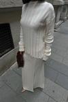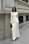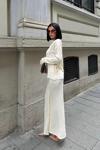 - Ekru rengin zarif sadeliğiyle her ortama uyum sağlayan Darcy Etek Bluz Triko Takım.; - Düz deseni sayesinde kolayca kombinlenebilir ve şık bir görünüm sunar.; - Regular kalıbıyla rahat hareket etme özgürlüğü sağlar, gün boyu konforlu hissetmenizi garanti eder.; - Kadın ve kız kullanıcılar için idealdir; her yaş grubuna hitap eder.; - Dokuma kumaşı dayanıklılığı artırırken, yumuşak dokusuyla teninizde hoş bir his bırakır.; - Normal boy tasarımı ile hem günlük kullanım hem de özel günler için uygundur.; - TR menşeli olmasıyla yerel üretimden gelen kaliteyi yansıtır.; - Casual ve günlük ortamlarda rahatlıkla tercih edebileceğiniz bir stil sunar.; - İki parçadan oluşan set, pratikliği ve şıklığı bir arada sunarak gardırobunuzda vazgeçilmez olacak.; - Tüm sezonlarda kullanabileceğiniz esneklikteki tasarım, mevsim geçişlerinde de size eşlik eder.; - Bluz-etek alt üst takım olarak tasarlanmıştır; modern ve sofistike bir görünüm kazandırır.