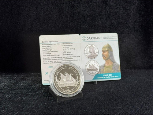 Bu koleksiyon parçası, Türkiye Cumhuriyeti Darphanesi tarafından 2017 yılında çıkarılan Gemiler ve Kaşifler Serisi'nin bir parçasıdır ve No. 8: Umur Bey gümüş hatıra parası olarak bilinir. Özenle tasarlanmış bu 925 ayar gümüş para, Ege’nin güçlü denizcisi ve Osmanlı'nın ilk büyük deniz komutanlarından biri olan Umur Bey’in denizcilikteki başarılarını ve mirasını onurlandırır.