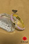 Vintage Mor Çiçek Desenli Gold Kelepçe Bileklik •Vintage tasarım, zarif mor zemin üzerine işlenmiş çiçek motifleriyle öne çıkar.
