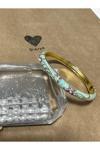 Vintage Yeşil Çiçek Desenli Gold Kelepçe Bileklik •Vintage tasarım, yeşil zemin üzerine mor ve beyaz çiçek motifleri ile zarif bir görünüm sunar.