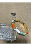 Vintage Turuncu & Turkuaz Bambu Desenli Gold Kelepçe Bileklik•Vintage tasarım, turuncu ve turkuaz renk blokları ile enerjik bir şıklık sunar.