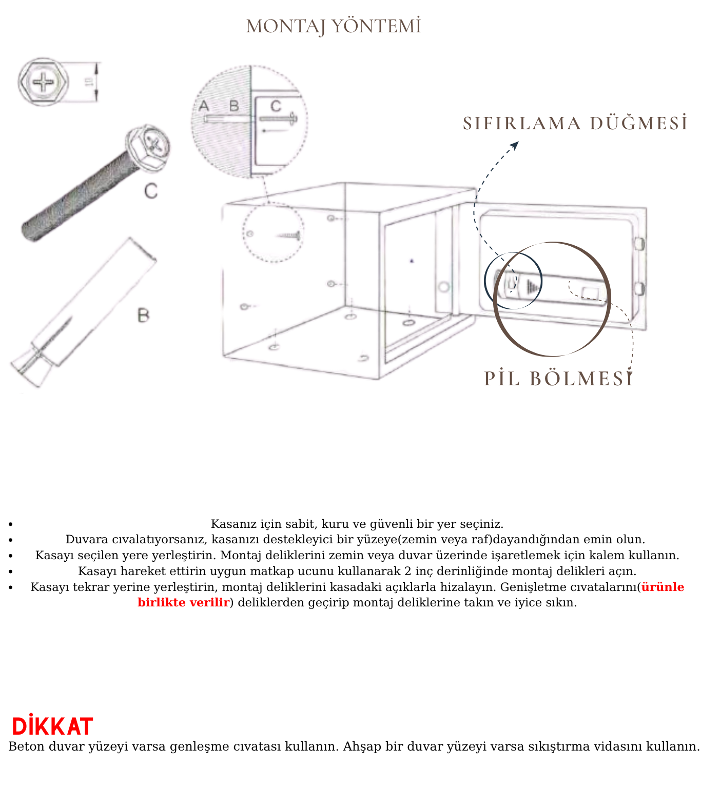 -Duvar Montajı İçin Vida Ve Dübeller (Sabitleme Desteği Duvara Montajlanabilir)