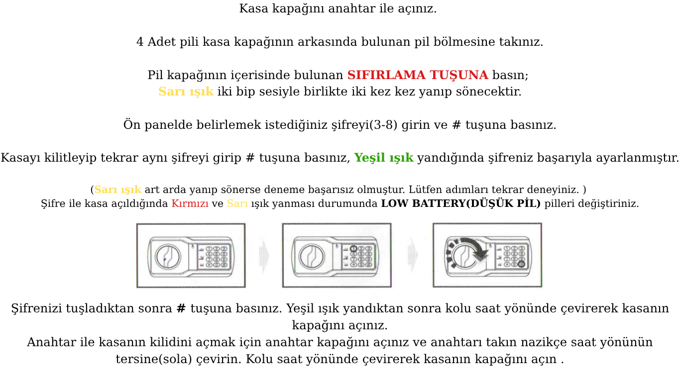 - Kapıyı Şifrenizle Açarken Yeşil ve Kırmızı Işıklar Yanarsa Düşük Pil Uyarısı