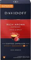 DAVIDOFF Rich Aroma, sizi karakter dolu canlı bir Espresso'nun keyfini çıkarmaya davet ediyor. Lezzet profili: Baharatlı bir nota ile tamamlanan yoğun bir gövdeye sahip olan DAVIDOFF Rich Aroma, gerçekten heyecan verici bir kahve keyfi sunar.