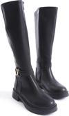 ZenaLook 02-307 Siyah Düz Topuklu Günlük Bayan Binici Çizme