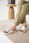 Selda Almira Dünyam Kadın Topuklu Terlik Ve Çanta Set Krem