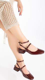 Daxtors D0351 Kadın Arkası Açık Kare Burunlu Baretli Düşük Klasik Topuklu Ayakkabı