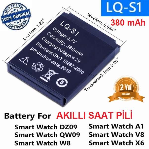 Akıllı Saat Bataryası Pili GT08 DZ09 V8 A1 LQ-S1 Uyumlu
