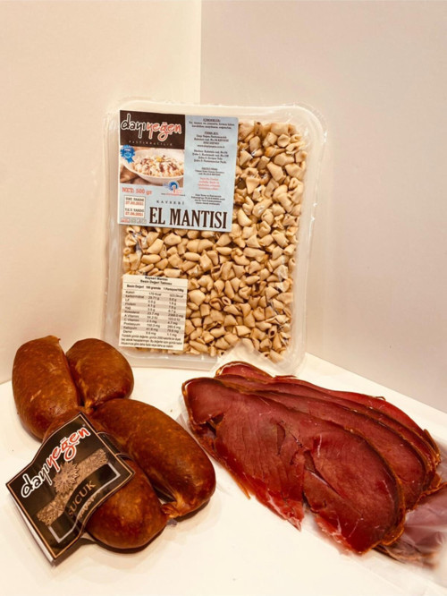 Ürün İçeriği 500 GR DAYI YEĞEN SUCUK 250 GR ÖZEL YAĞSIZ PASTIRMA 500 GR DAYI YEĞEN MANTI