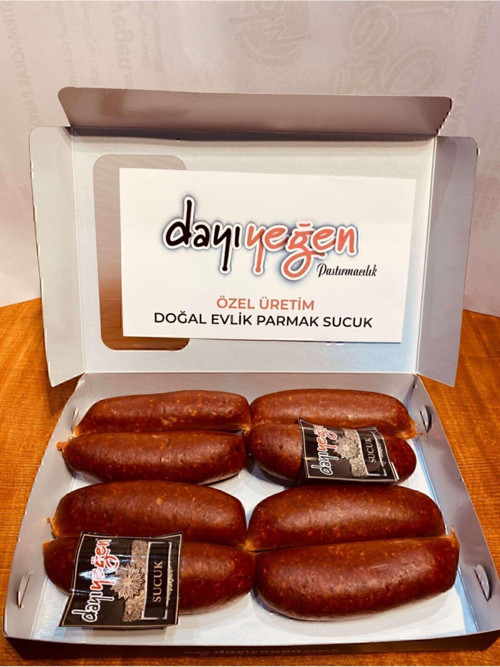 Özel Üretim Doğal Evlik Parmak Sucuk Erciyes'in rüzgarıyla lezzetlenmiş, özel olarak üretilmiş doğal evlik parmak sucuk.