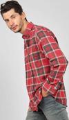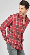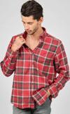 Erkek Çizgili Uzun Kollu Yün Apre Gömlek 0171109 Kırmızı