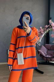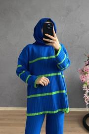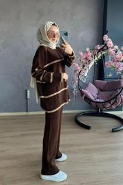 - Günlük kullanıma uygun tasarımıyla rahatlığı ve şıklığı bir arada sunan iki renkli mevsimlik ince kumaş triko takım