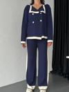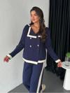 Geometrik desenleriyle modern ve şık bir görünüm sunan triko takım, her yaş grubuna hitap eder