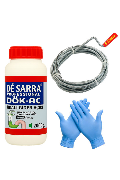 De Sarra Dök-Aç 2 Litre Banyo Lavabo Gider Açıcı Ve 5Mm 5 Metre Şiş Yay Kılavuz Susta Set