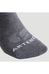 RENK: Granit grisi ÜRÜN FAYDALARI Yıpranmaya karşı dayanıklılık: Çorabın kullanım süresini uzatmak için topuk ve burun kısmı güçlendirilmiştir. Tahrişi önleme: Pamuk penyenin yumuşaklığı, sürtünme noktalarında "havlu kumaş" güçlendirmeler. Destek: Çorabın tamamı ve ayağın orta bölümü iz bırakmayan elastik dokumaya sahiptir. ÜRÜN KONSEPTİ VE TEKNOLOJİSİ ÜRÜN BİLEŞİMİ: Çorap 78% Pamuk, 21% Poliamit, 1% Elastan BAKIM TAVSİYESİ: İlk kullanımdan önce yıkayın. Hassas programda yıkayın. TEKNİK BİLGİLER Rahatlık ve pamuk : Pamuklu penye, liflerin uzatılması, kumaşın yumuşaklığının ve doğallığının dolayısıyla kalitesinin artırılması amacıyla özel bir fırçalama işlemi uygulanmış bir pamuk türüdür. Bu işlem sonucunda, tenis çorabınız daha yumuşak ve giymesi daha rahat olur. Sürtünme bölgeleri ayakkabıyla sürtünmeden kaynaklı ısınmanın önüne geçmek için daha kalın yapıdadır.