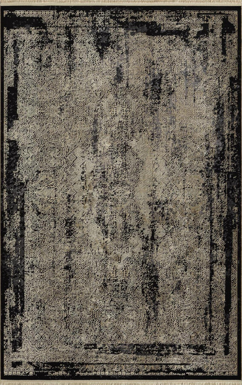 Decoraev Porto Siyah Halı Gold Halı Etnik Desen Bambu Halı Modern Eskitme Desen Yumuşak Salon Halısı