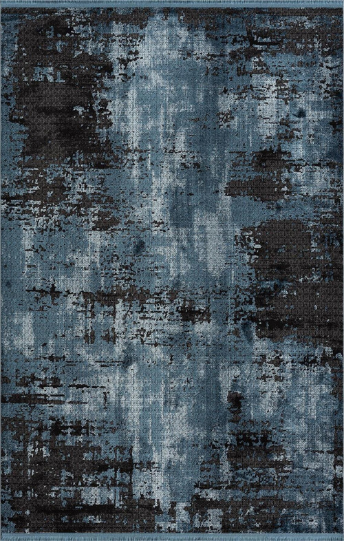 Decoraev Porto Siyah Halı Lacivert Halı Bambu Halı Modern Eskitme Desen Yumuşak Salon Halısı