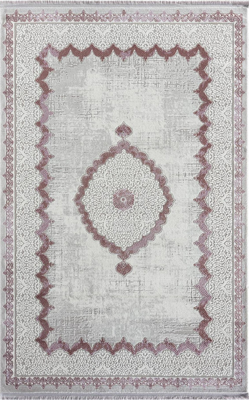 Decoraev Sofia Gri Halı Lila Detaylı Kenar Çerçeveli Göbekli Modern Ve Klasik Tasarım Salon Halısı