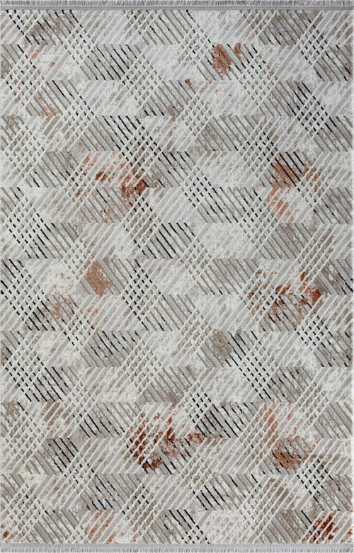 DECORAev Sofia Gri Halı Siyah Ve Kiremit Detaylı Geometrik Desenler Modern Akrilik Tozu Az Salon Halısı