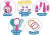 parfüm, gözlük, yüzükler, saç tokaları, bilezikler, ruj, oje, saç fırçası, el aynası ve tarak olmak üzere 15 parça aksesuardan oluşmaktadır. Ürün