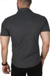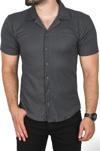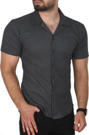 Deepsea Erkek Antrasit Slim Fit Pamuklu Apaş Yaka Kısa Kol Penye Gömlek Dokulu Jakar Kumaş Dar Kesim Spor Gömlek 2501216