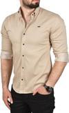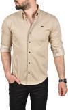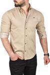 Deepsea Erkek Bej Slim Fit Pamuklu Kot Gömlek Kolay Ütülenebilir Çıt Çıtlı Likralı Spor Gömlek 2502504