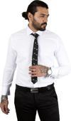 Beyaz Düz Slim Fit Düz Manşet Klasik Yaka Smokin Gömlek - Image 1