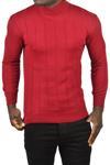 Deepsea Erkek Bordo Slim Fit Likralı Tüylenme Yapmayan Yarım Balıkçı Çizgili Triko Yarım Boğazlı Kazak 2505503