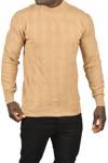 Deepsea Erkek Camel Dar Kesim Baklava Desenli Yarım Boğazlı Yaka Triko Yarım Balıkçı Yaka Kazak 2505506