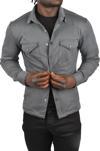 Deepsea Erkek Füme Örme Kumaş Gömlek Yaka Çıtçıtlı Cepleri Kapaklı Likralı Dar Kesim Spor Ceket 2501559