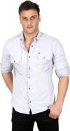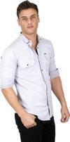Erkek Gri Likralı İnce Fitilli Çıtçıtlı Çift Cepli Dar Kesim Gabardin Gömlek 2300421