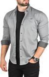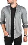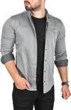 Deepsea Erkek Gri Slim Fit Pamuklu Kot Gömlek Kolay Ütülenebilir Çıt Çıtlı Likralı Spor Gömlek 2502504