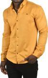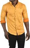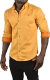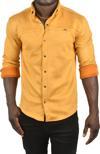 Deepsea Erkek Hardal Sarısı Likralı Çıtçıtlı Kırışmayan Süet Kumaş Slim Fit Cepsiz Mevsimlik Gömlek 2500556