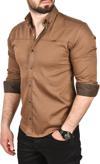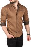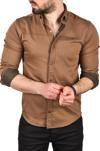 Deepsea Erkek Kahve Slim Fit Pamuklu Kot Gömlek Kolay Ütülenebilir Çıt Çıtlı Likralı Spor Gömlek 2502504