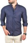 Deepsea Erkek Lacivert Çizgi Desenli Hakim Yaka Flamlı Keten Uzun Kol Gömlek 2201895