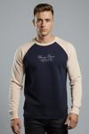 Deepsea Erkek Lacivert Fitilli Şardonlu Sweatshirt - Pamuklu, Likralı, Rahat Kalıp Sweatshirt 2601510