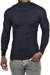 Erkek Lacivert Kare Desenli Balıkçı Yaka Slim Fit Boğazlı Triko Kazak 2505493