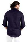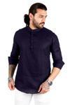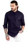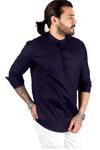 Ürün Adı: DeepSEA Yarım Düğmeli Hakim Yaka Flamlı Keten Uzun Kollu Erkek Gömlek