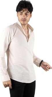 Ürün Adı: DeepSEA Yarım Düğmeli Hakim Yaka Flamlı Keten Uzun Kollu Erkek Gömlek