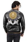 deepsea deri mont, deepsea deri ceket, erkek suni deri mont, erkek suni deri ceket, arkası baskılı mont, gold detaylı erkek ceket, siyah bomber mont, pamuk polyester mont, likralı deri ceket, şık erkek mont, modern erkek dış giyim
